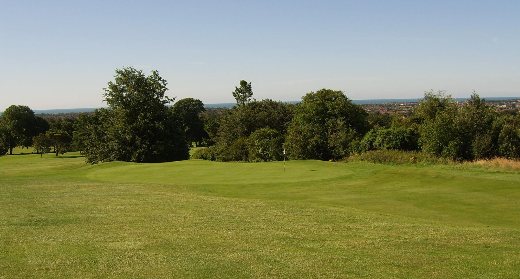 Right to left dog leg par 4 with a tricky left to right sloping fairway. Tee shot is all important if you want to leave an easy approach shot.